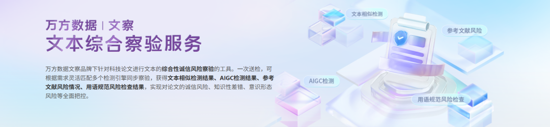 破局利器!万方数据「文察」品牌重磅推出文本综合察验系统!一次送检,多维察验,为机构与学者提供文本检测新服务。