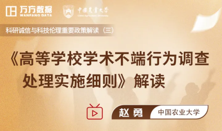 为了帮助高校管理人员、教学科研人员与学生加深对《细则》的理解,增强对学术不端行为的认识与防范,本次课程特邀中国农业大学赵勇老师对《细则》出台的背景、使用范围、主要内容以及具体落实要点进行详细解读与重点说明,内容丰富,不容错过!