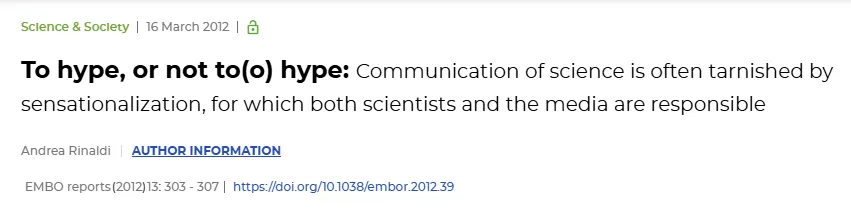[3] To hype, or not to(o) hype: Communication of science is often tarnished by sensationalization, for which both scientists and the media are responsible - EMBO reports