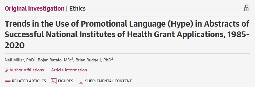 [1] Trends in the Use of Promotional Language (Hype) in Abstracts of Successful National Institutes of Health Grant Applications, 1985-2020 - JAMA Network Open