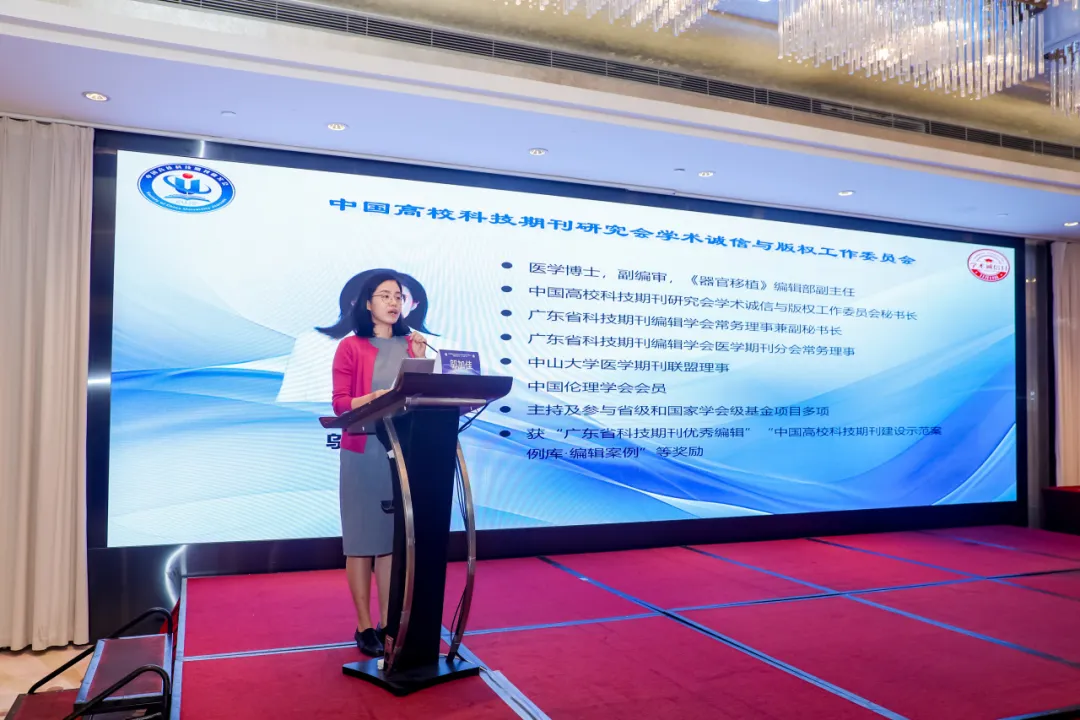 《暨南大学学报(自然科学与医学版)》编审陈咏梅分享了“科技期刊出版伦理审查清单的制订与应用”。