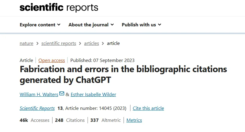 [7] Fabrication and errors in the bibliographic citations generated by ChatGPT - Scientific Reports